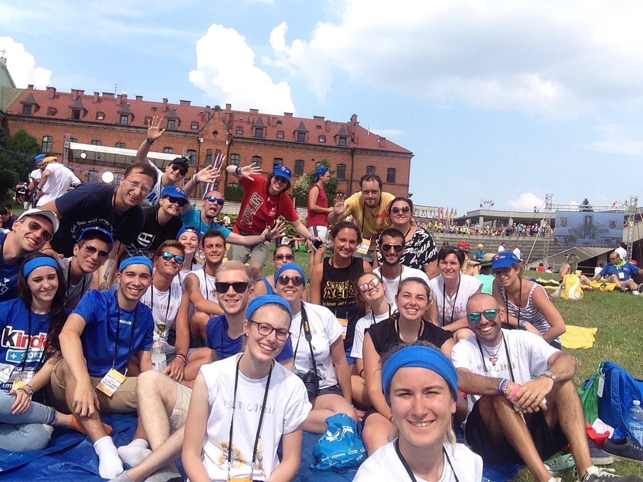 A Cracovia abbiamo condiviso momenti stupendi: ci siamo conosciuti, abbiamo condiviso gioie e fatiche dello stare insieme, sono nati legami belli che continuano tuttora. Dall’interminabile viaggio in pullman nel cuore dell’Europa – Vienna, Praga, Brno, qualcuno di cartello stradale non se n’è perso uno – alla visita al campo di Aushwitz così carica di significato, al brivido del pullman che per questioni di limite di tempo non può portarci a Niegowic. L’arrivo nel nostro piccolo paese e la sistemazione negli alloggi, qualcuno in famiglia, la maggior parte nella scuola. Poi l’inizio delle catechesi, la condivisione con il nostro Vescovo Corrado, l’unico pomeriggio libero in giro per Cracovia e inaspettatamente Casa Italia. A proposito: il servizio raccolta differenziata è ancora attivo? Misteri (o poteri) della fede! E come dimenticarsi della festa degli Italiani? Sole, acqua, ancora sole, file interminabili e un po’ di ottima sbobba (sì, ragazzi, mi manca pure quella, ogni tanto): il concertone della sera e il ritorno con il brivido, spersi a mezzanotte in mezzo a quella piazza là dal nome impronunciabile a rincorrere tram e taxi che mai sarebbero passati di lì. A proposito, grazie Bra per le tue doti di negoziatore! La lunga attesa per l’arrivo di Papa Francesco, il rugby improvvisato con i frati e le foto con i pompieri. E ancora: la Via Crucis a Blonia, finalmente un paninaro commestibile (e chi se li scorda gli stinchi di maiale, vero don Franco?!?). E poi la veglia con la Messa: la passeggiata per raggiungere il Campus Misericordiae, il caldo martellante del pomeriggio, il silenzio al momento dell’adorazione, le nostre luci rosse a intermittenza che illuminavano giochi, risate e sorrisi. La notte sotto le stelle con i materassini (a parte per qualcuno, spostato con sufficiente delicatezza dal suo, vero Micol?!?), il risveglio prematuro dovuto al canto degli usignoli verdi e blu (con accento bresciano) e gli alura, così cari alla Elena ma sempre molto efficaci. La Messa, il ritorno a casa sotto il diluvio universale, la ritirata nei bagni chimici e poi ancora acqua, piante sotto cui rifugiarsi e attendere (che cosa?). Perché nel viaggio di ritorno non cantiamo un po’ insieme, così per ingannare l’attesa? E via con Whatsapp…