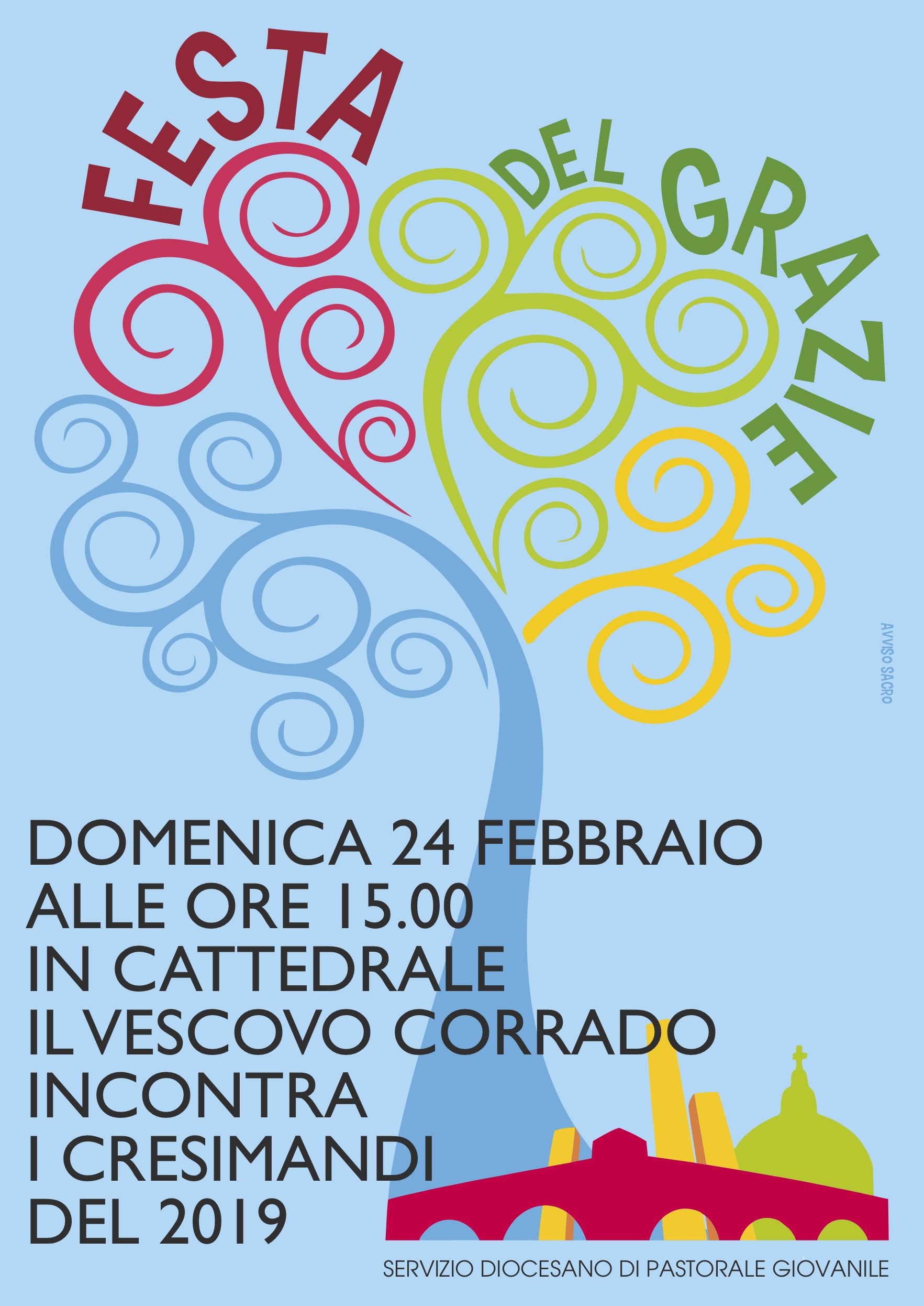 Domenica 24 febbraio in Cattedrale alle ore 15.00 il Vescovo Corrado incontrerà i cresimandi dell’anno in corso per la tradizionale Festa del Grazie.