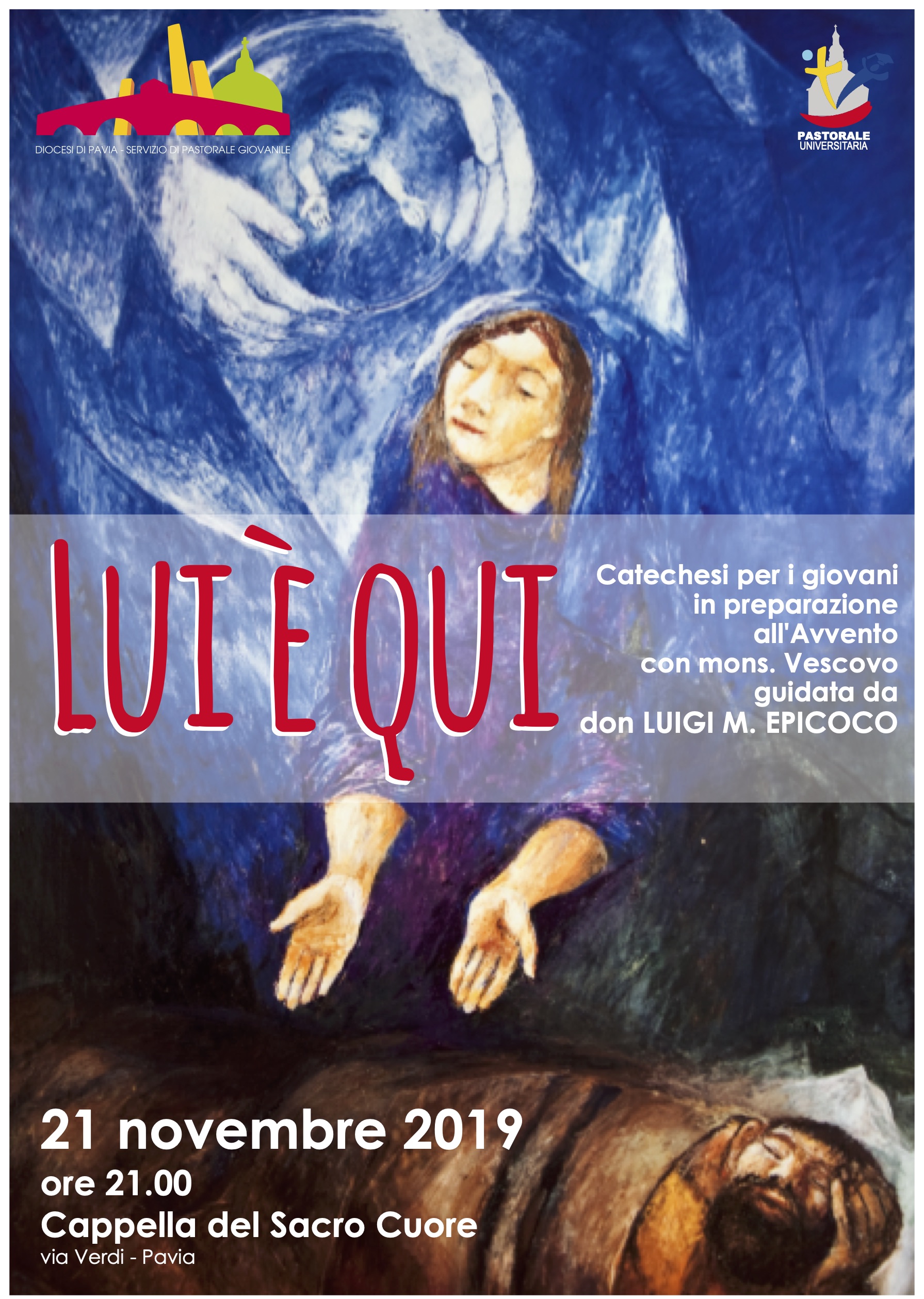 Giovedì 21 Novembre alle ore 21 presso la Chiesa del Sacro Cuore (Pavia, Ticinello) si terrà la catechesi in preparazione all’Avvento per i giovani con il Vescovo. Ospite della serata don Luigi Maria Epicoco.