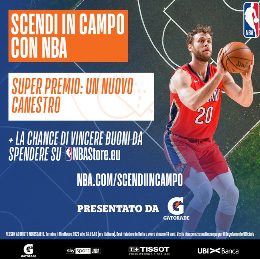 National Basketball Association (NBA) e Gatorade hanno organizzato il concorso a titolo gratuito: “Scendi in Campo con NBA presentato da Gatorade”, una campagna per donare canestri da basket ai fan italiani che permetta loro di poter giocare e rimanere attivi mentre continuano ad osservare le linee guida sulla salute e sicurezza relative al coronavirus.Una opportunità unica anche e soprattutto per gli Oratori e le Parrocchie di sostituire o dotare i propri spazi, senza costo alcuno, di un’attrezzatura professionale.Le modalità di partecipazione sono molto semplici: tramite la divulgazione del concorso a tutti quanti possano essere interessati potete costruire la possibilità di vincere i premi.Coloro che lo vorranno possono registrarsi fino al 15 ottobre su NBA.com/ScendiinCampo per vincere un canestro professionistico da installare in uno spazio comune dell’oratorio, della parrocchia oppure in altro luogo di tipo sociale e/o comunitario, un canestro da installare in casa, o un voucher per il merchandising ufficiale NBA da acquistare su NBAStore.eu. I vincitori dei premi premium riceveranno la completa installazione di un nuovo canestro mentre i fan selezionati vinceranno un nuovo canestro portatile Spalding NBA Alley Oop. Ogni canestro sarà consegnato o installato nel rispetto delle più recenti normi di pubblica sicurezza e salute.I fan sono incoraggiati a registrarsi utilizzando e inviando foto o video che dimostrano come loro o la loro comunità possano beneficiare dall’avere un nuovo canestro.Sky Sport, Tissot e UBI Banca si sono uniti a Gatorade come marketing partner per promuovere la campagna e supportare il ritorno al campo delle comunità locali.Per ogni informazione potete fare riferimento al seguente indirizzo mail nbacontests@contestrebel.com.