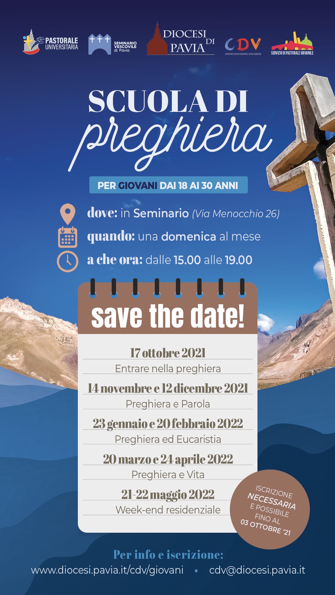 Per avere maggiori informazioni o per iscriversi, si può accedere al link www.diocesi.pavia.it/cdv/giovani