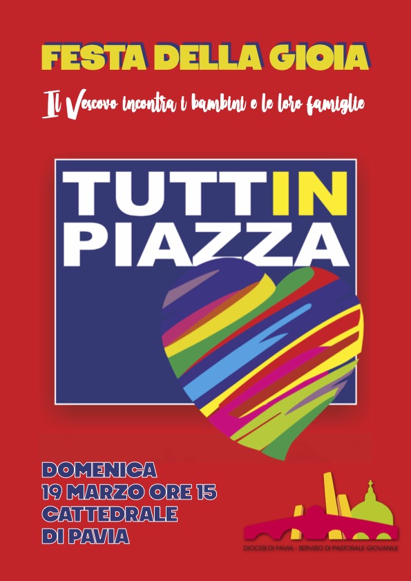 I servizi diocesani per la pastorale giovanile e l’oratorio, per la catechesi e per la famiglia invitano i bambini del catechismo e le loro famiglie alla FESTA DELLA GIOIA, il tradizionale incontro con il Vescovo Corrado, che si terrà DOMENICA 19 MARZO ALLE ORE 15 IN CATTEDRALE.