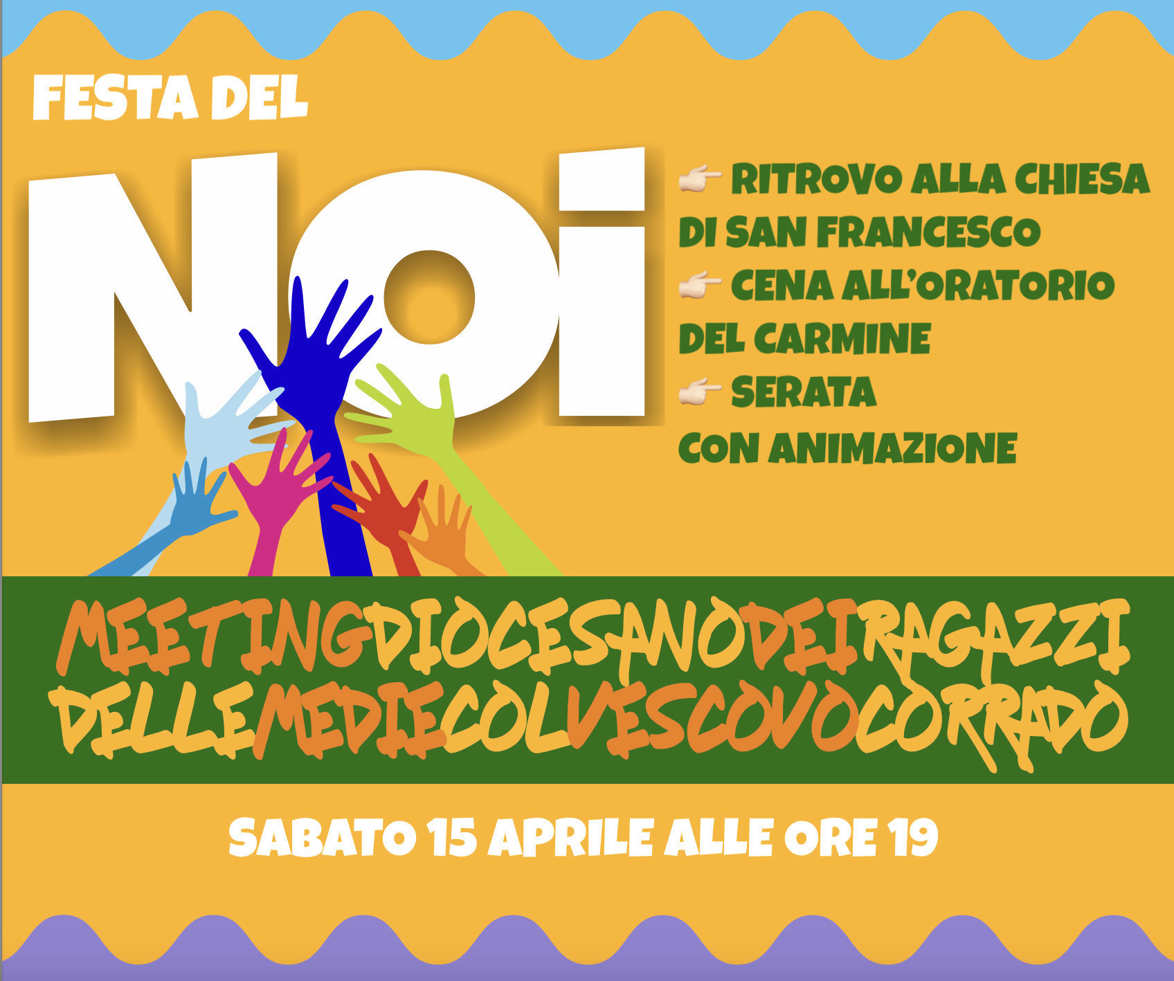 LA FESTA DEL NOI, l’incontro dei ragazzi del postcresima con il Vescovo Corrado, si terrà SABATO 15 APRILE con la seguente modalità: