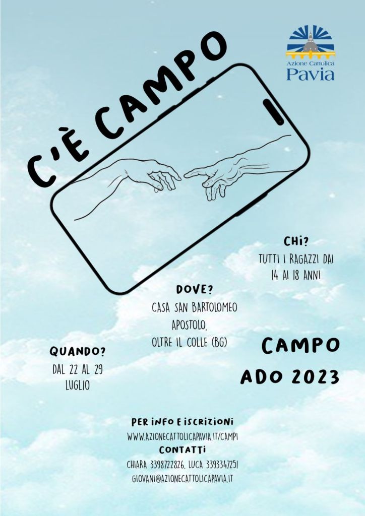 Troverete qui allegate le locandine dei campi e tutti i particolari sul nostro sito www.azionecattolicapavia.it\campi con i relativi form da compilare: