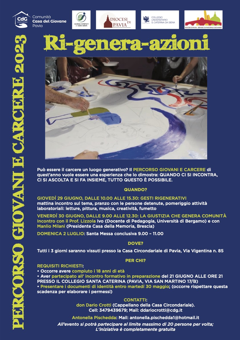 Ritorna il percorso Gioveni e Carcere per la sua edizione 2023. Il tema scelto per questa edizione è Ri-genera-azioni. Tutte le info sulla locandina o chiedendo direttamente a don Dario.