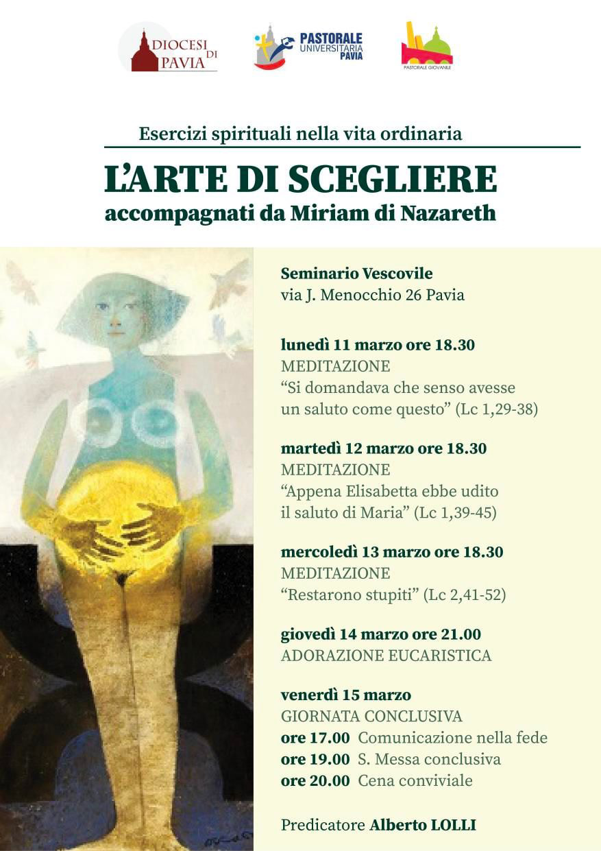 Il tema è “L’ARTE DI SCEGLIERE accompagnati da Miriam di Nazareth”. Predicatore don Alberto Lolli.