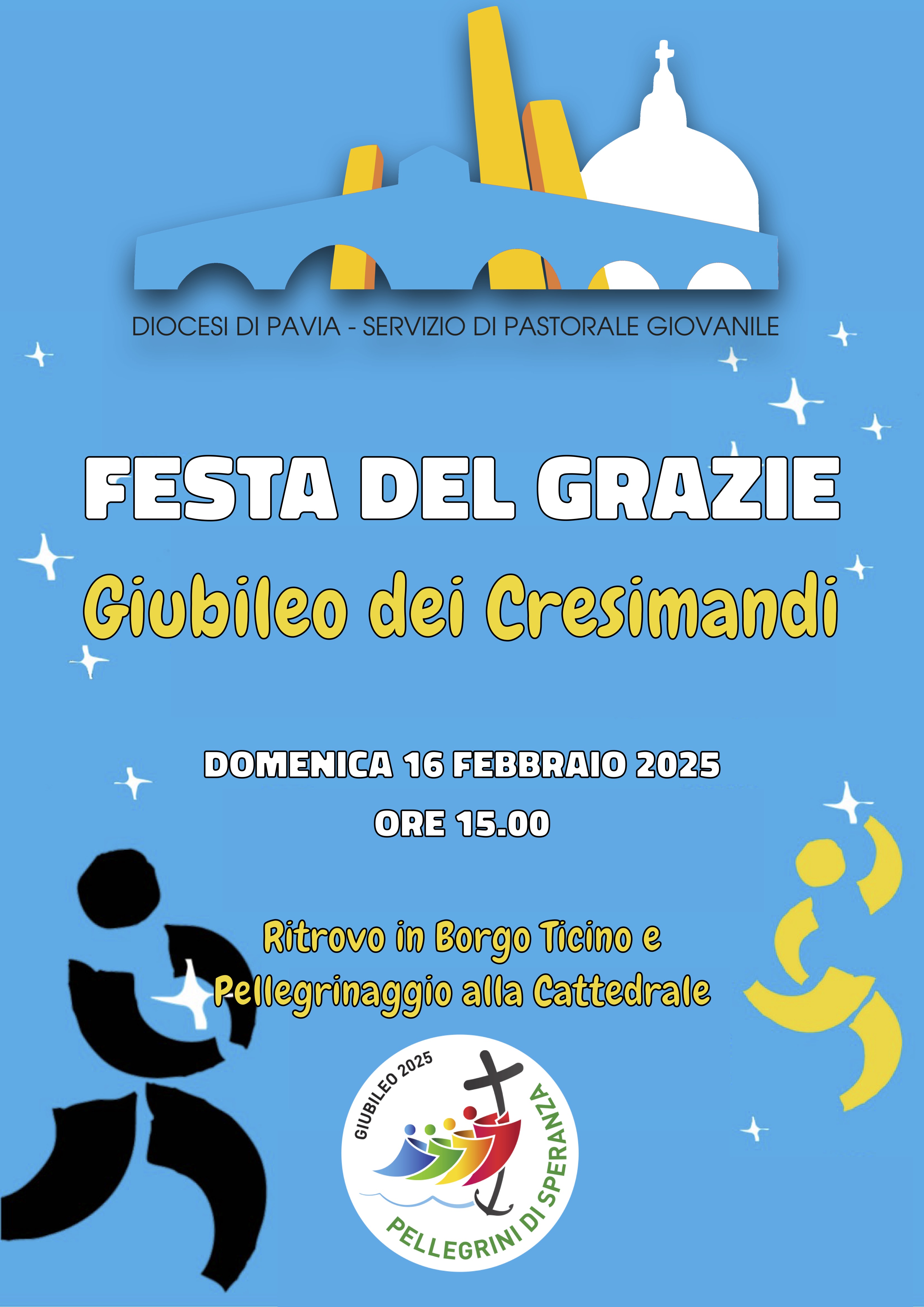 Domenica 16 febbraio alle ore 15 ci ritroveremo all’Oratorio del Borgo Ticino per l’inizio della Festa del Grazie, il tradizionale incontro tra il Vescovo e i cresimandi dell’anno 2025, durante il quale vivremo il loro Giubileo. Da lì ci porteremo in pellegrinaggio in Cattedrale.