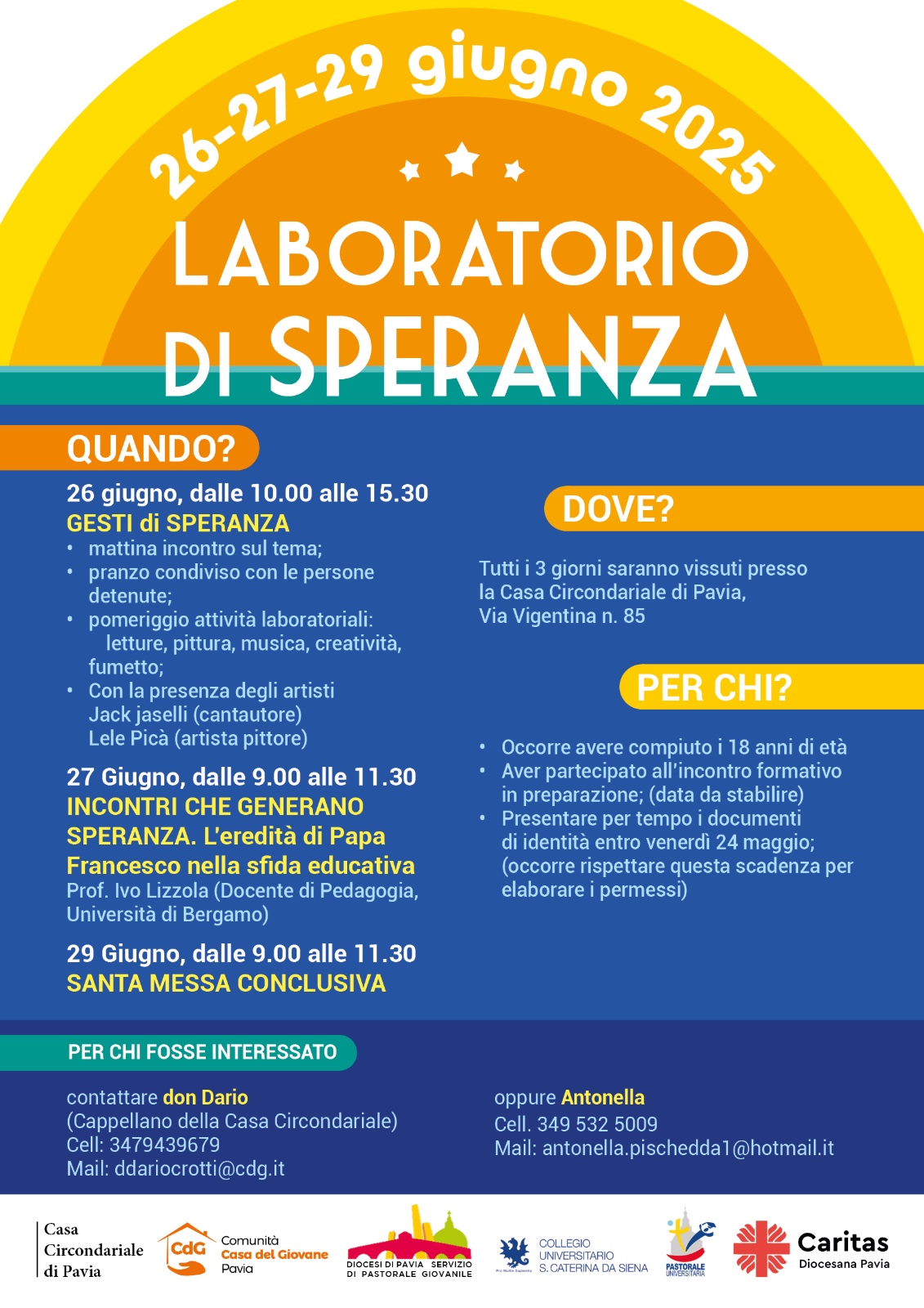Dal 26 al 29 giugno presso la Casa Circondariale di Pavia secondo il programma che trovate sulla locandina.